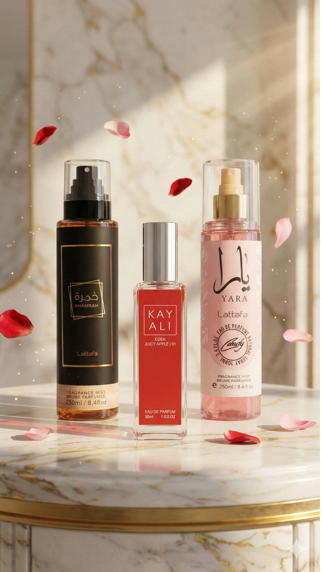 جمعنالك أكتر 3 عطور عاملين ضجة (Trend) في العالم حالياً في “بوكس الدلع”. ميكس عبقري يخليكي جاهزة لأي خروجة ولأي مود، والأهم.. إن ريحتك هتكون مميزة وثابتة وتلفت الانتباه من أول دقيقة.